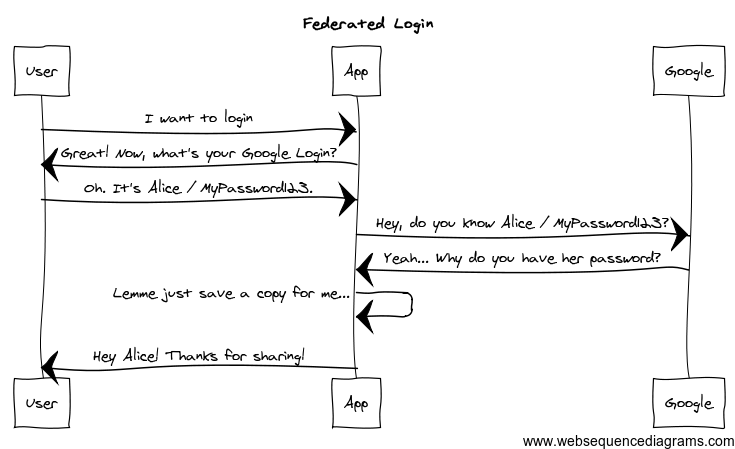 This is bad for everyone involved. Best case scenario is that the app has to deal with the responsibility of touching that password. Worst case? The app can now use your password buy movies from Google for you to watch together.